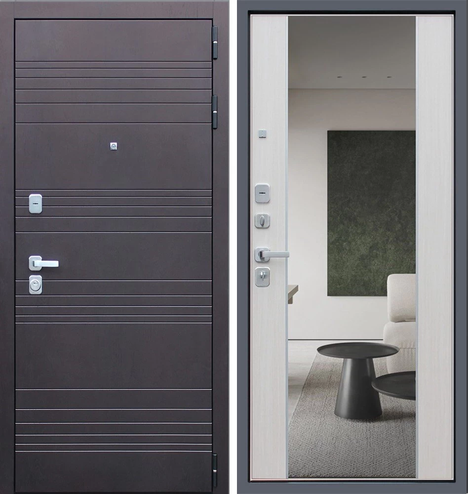 Надежная входная Дверь Дуэт с зеркалом премиум класса по цене 47 321 руб. Большая толщина стали защитит от проникновения в ваш дом, квартиру или коттедж. Используется очень качественная фурнитура: замки, цилиндры, ручки, защелки. Покрытие и отделка двери изготовлено под внимательным контролем производителя. Дверь имеет долгий срок службы и гарантию.